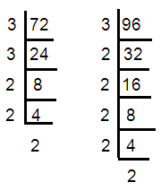 72 = 3 × 3 × 2 × 2 ==> 32 x 22