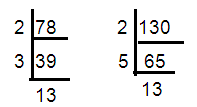 LCM of (78, 130) = 2 x 5 x 3 x13 ==> 390