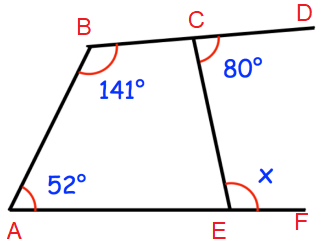 ∠EBC = 180 - x ∠EDC = 180 - 95 ∠EDC = 85 |