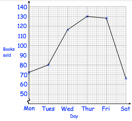 a) By observing the graph, on Thursday most number of books sold out.