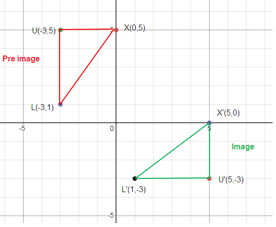X (0, 5), L (-3, 1) and U (-3, 5)