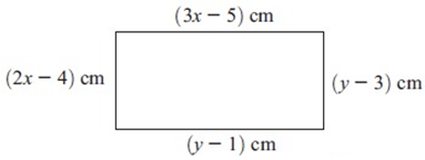 The figure alongside is a rectangle. Find x and y.