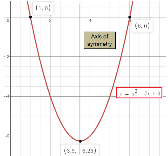The vertical line drawn at x = 3.5 will divide the parabola into two parts.