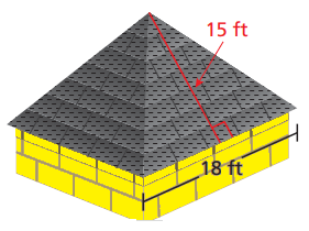 A roof is shaped like a square pyramid. One bundle of shingles covers