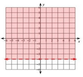 Considering the given line, it is dashed line. So, we have use < or >. Observing all the values from the shaded region, they are greater than -4.