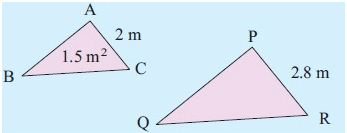 Triangles ABC and PQR are similar and the area of triangle ABC is 1.5 m2. What is the area of triangle PQR?