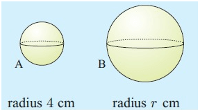 Two spheres have surface areas of 201 cm2 and 452 cm2 respectively. Find the radius of the larger sphere.