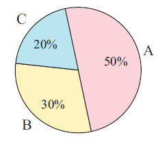 The pie chart represents the sales of three different types of soap powders, A, B and C.
