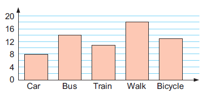 The column graph represents the results of a survey to determine the method by which students travel to school.